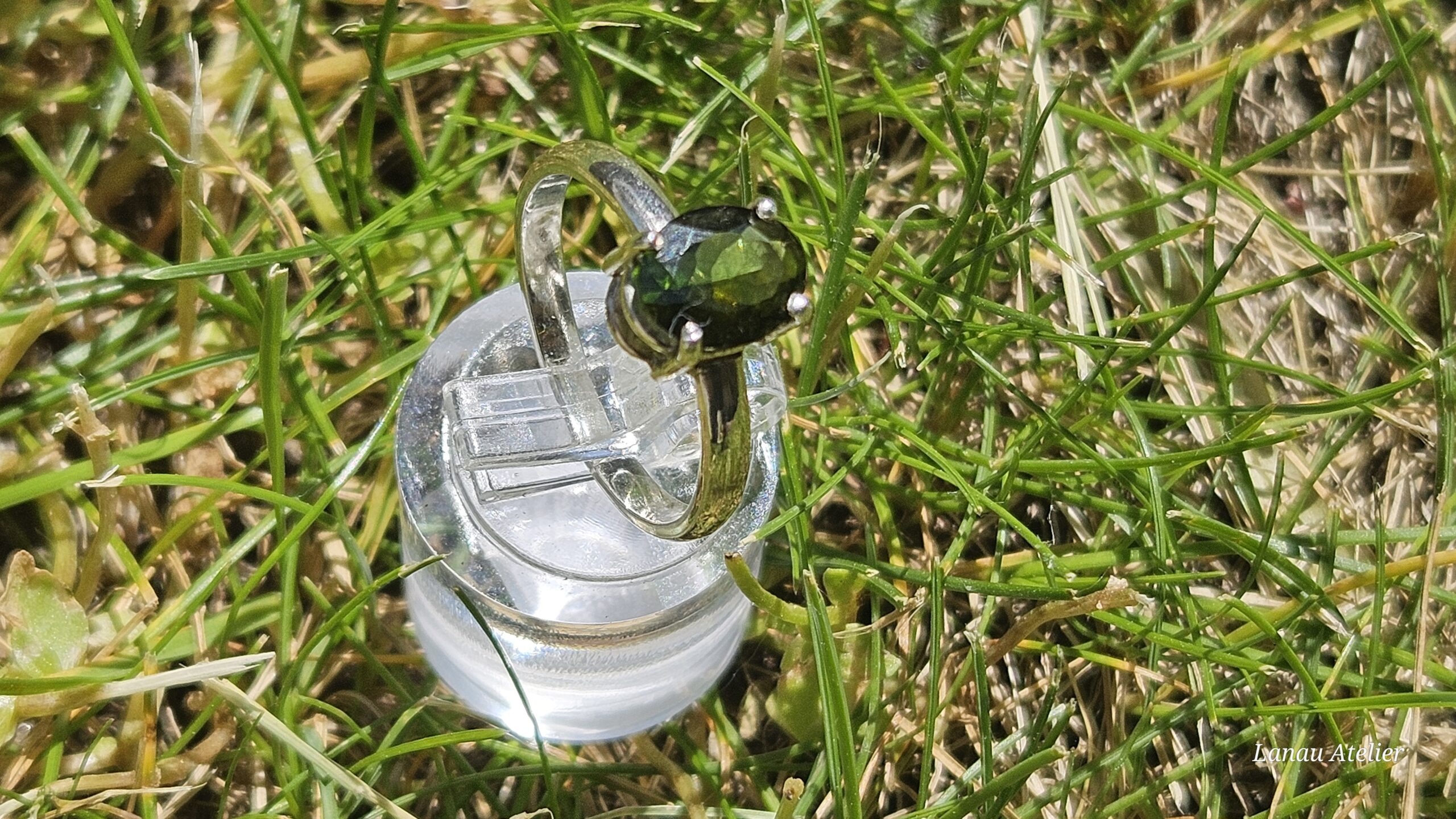 Anillo exclusivo en plata de ley 925 con una turmalina verde natural en talla oval. Un diseño elegante que celebra la belleza de la naturaleza.