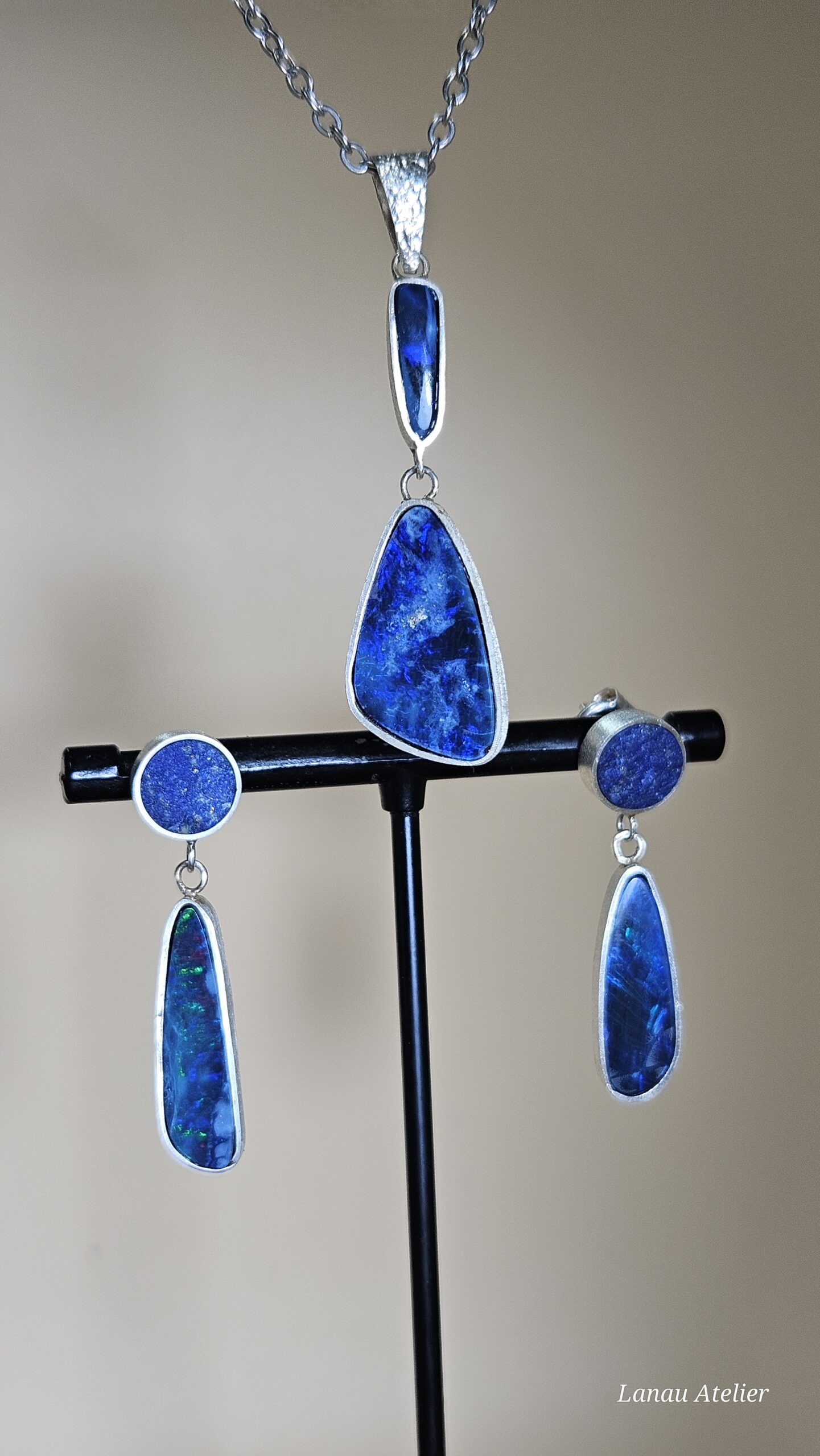 Cada colgante es único, ya que las vetas y los colores del ópalo australiano nunca se repiten. Una joya pensada para quienes buscan piezas con identidad, hechas sin prisa, que conectan con la naturaleza y con la autenticidad de lo artesanal.