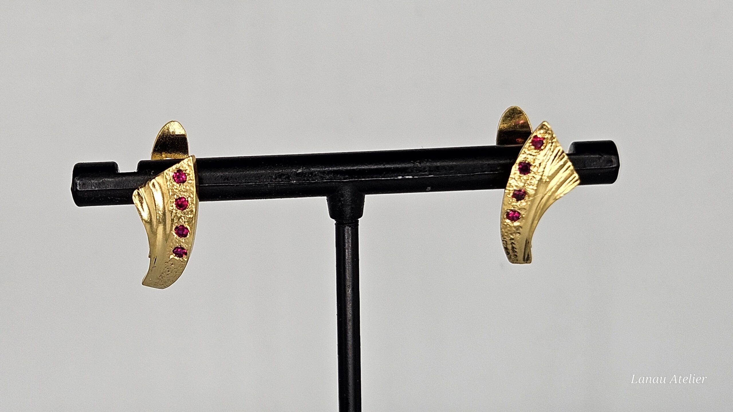 Pendientes en Plata de Ley con Baño de Oro 18K y Rubíes Ecológicos