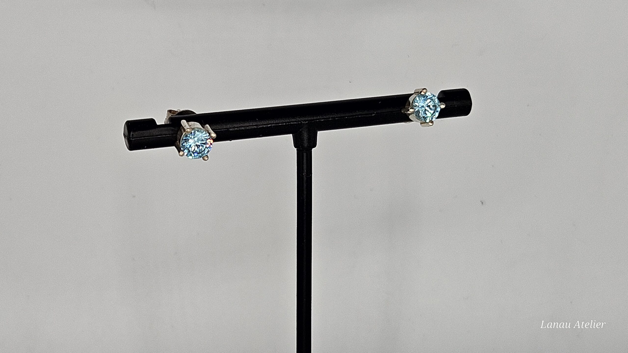 Elegancia y delicadeza en un diseño clásico y versátil. Estos pendientes dormilona, realizados a mano en plata de ley, presentan una circonita de 4,5 mm en un hermoso tono agua marina que aporta un toque fresco y sofisticado a cualquier look.