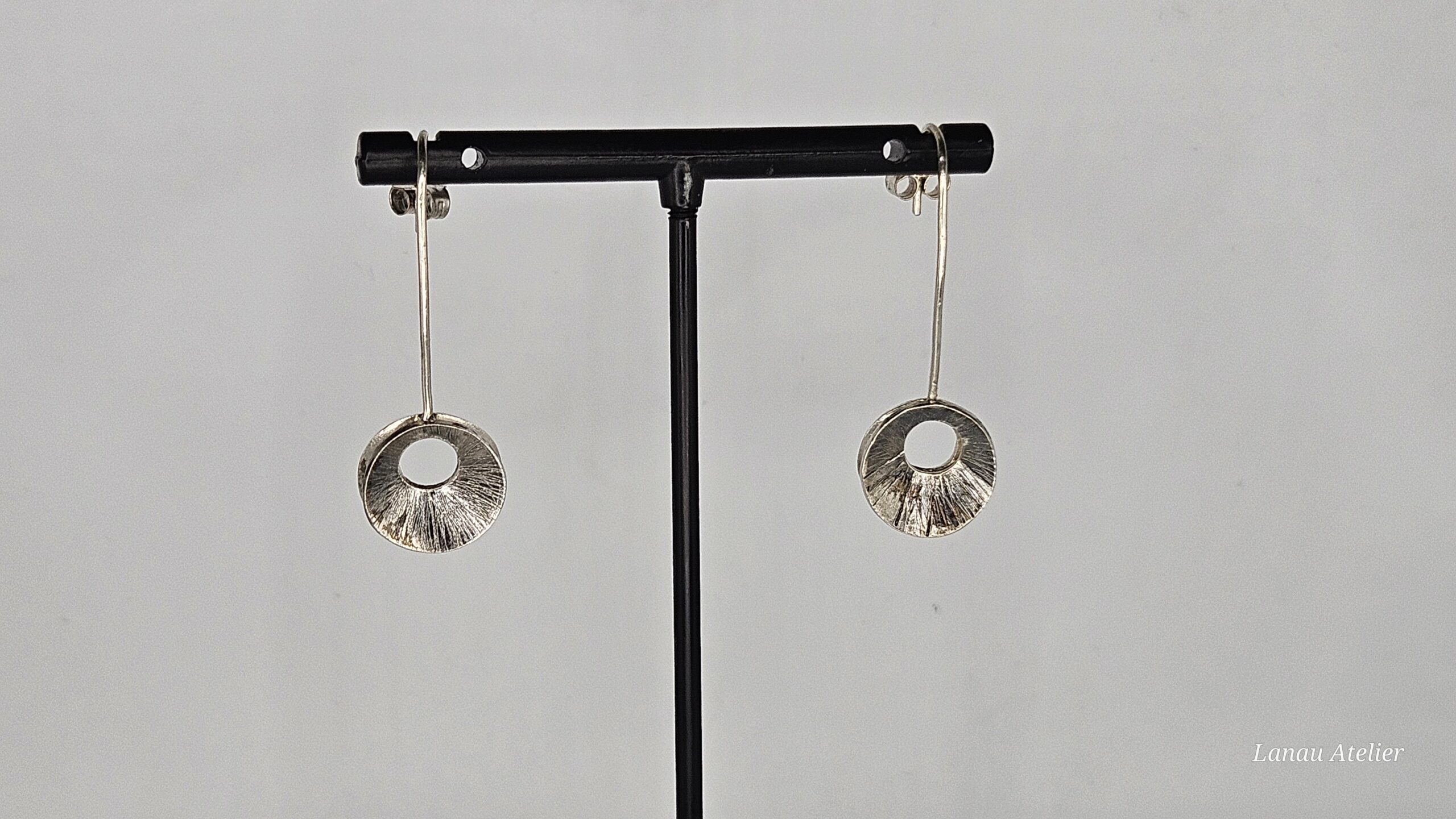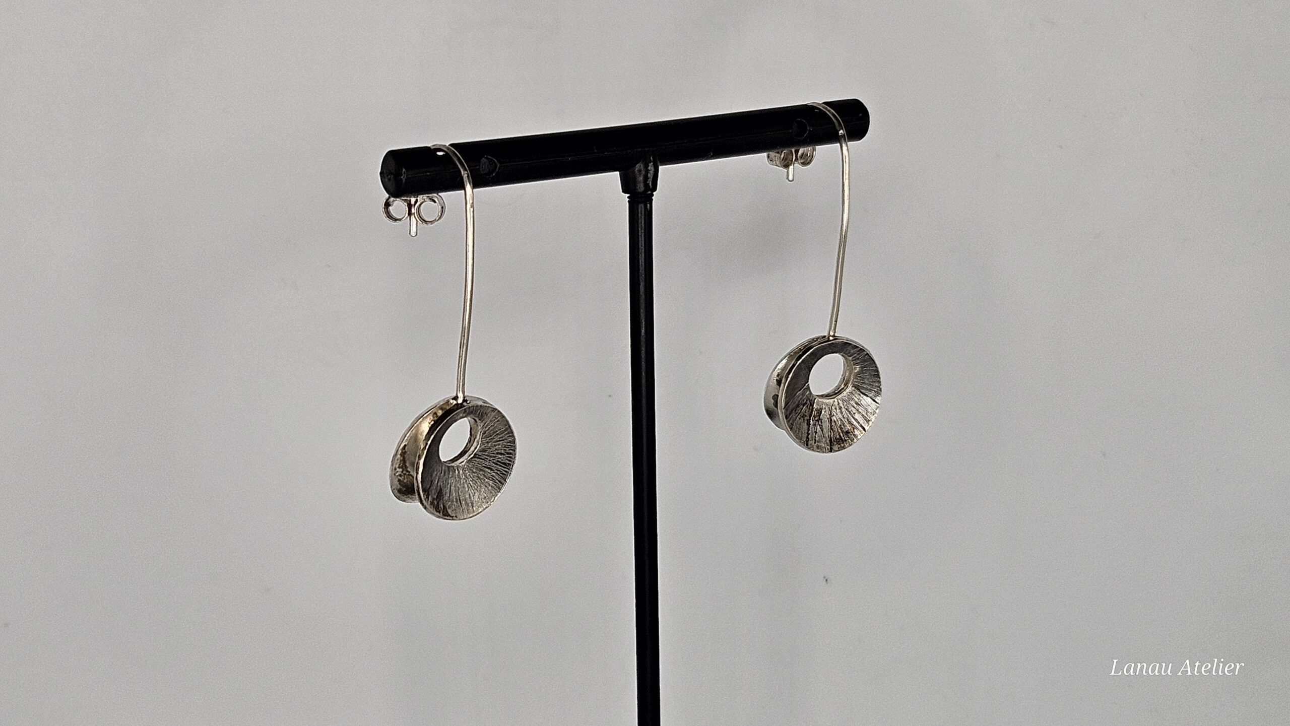 Pendientes delicados y contemporáneos elaborados en plata de ley 925, con una elegante forma de elipse que aporta ligereza visual y modernidad al diseño.