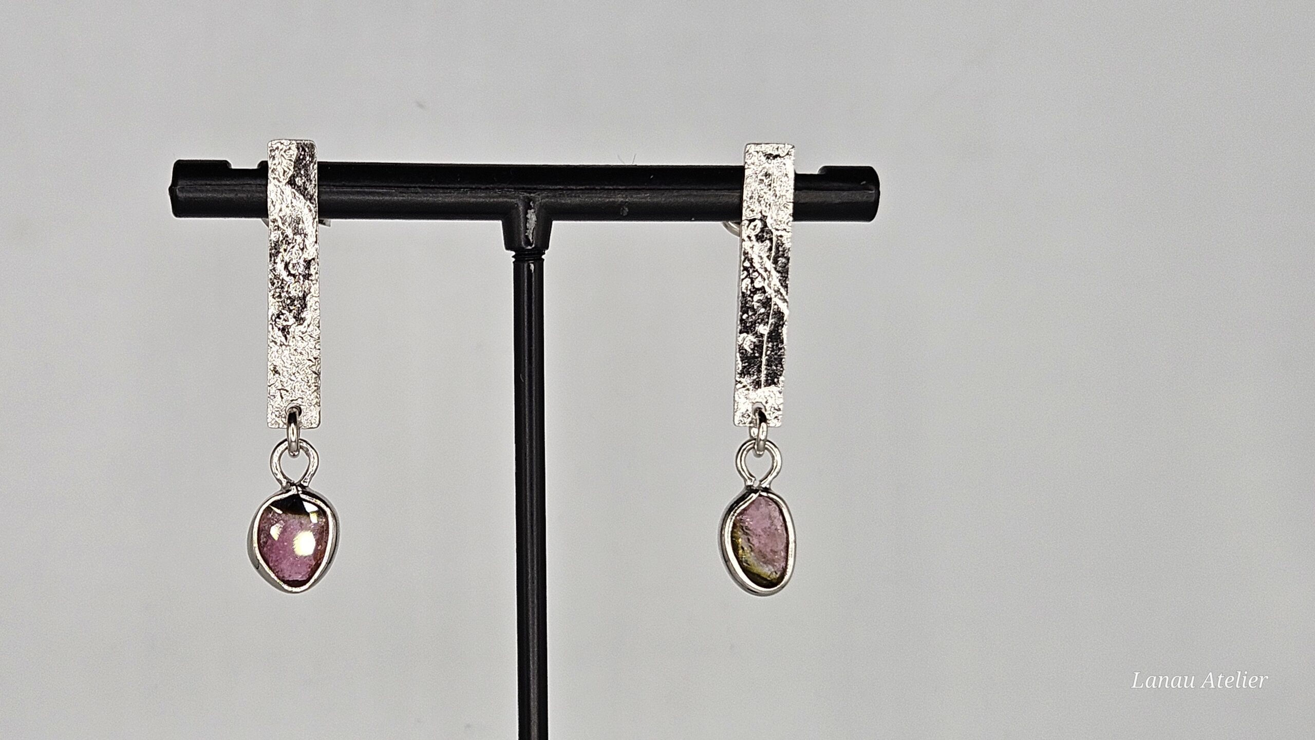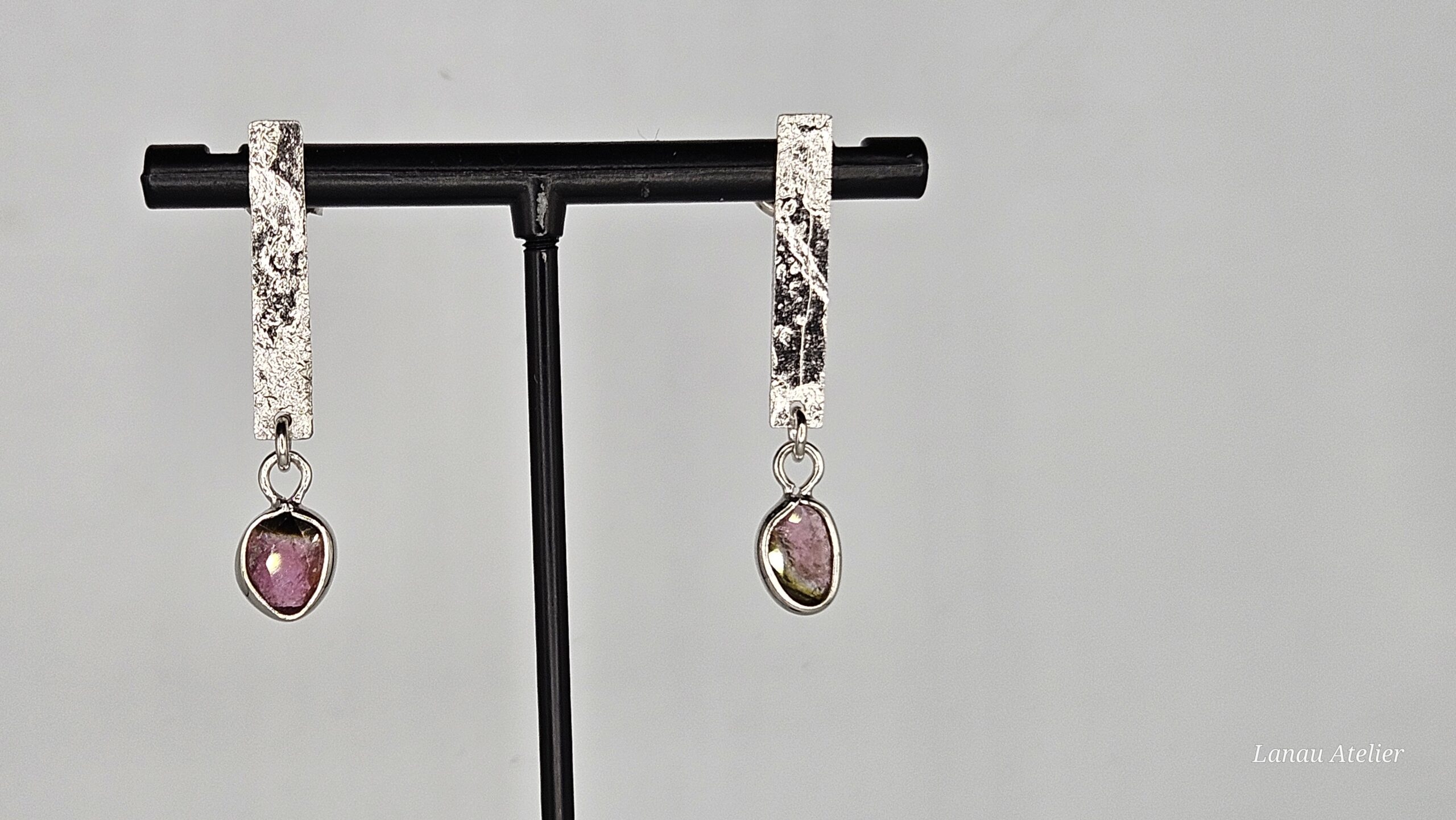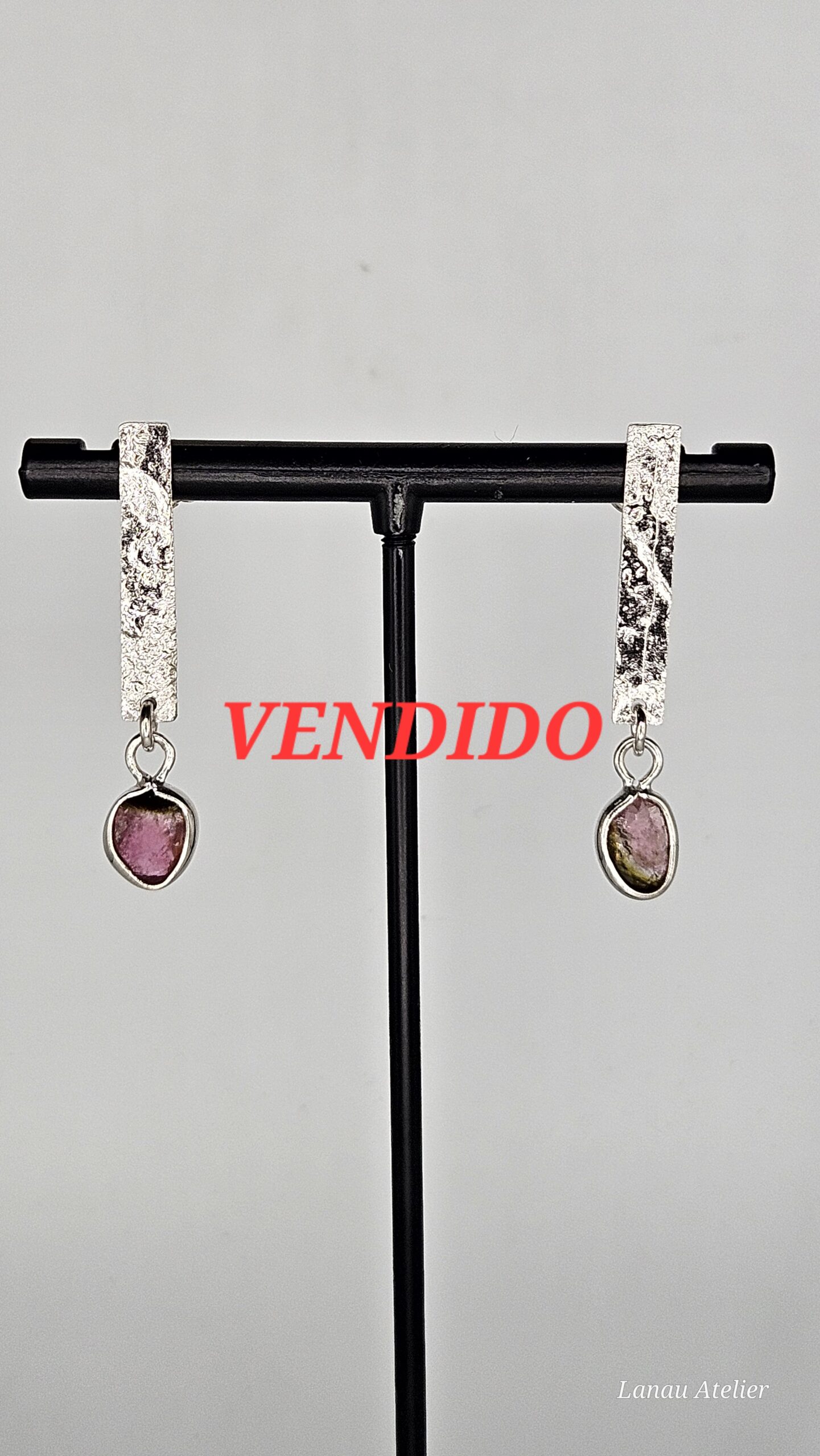 Pendientes artesanales de plata de ley 925 con turmalinas naturales e inclusiones