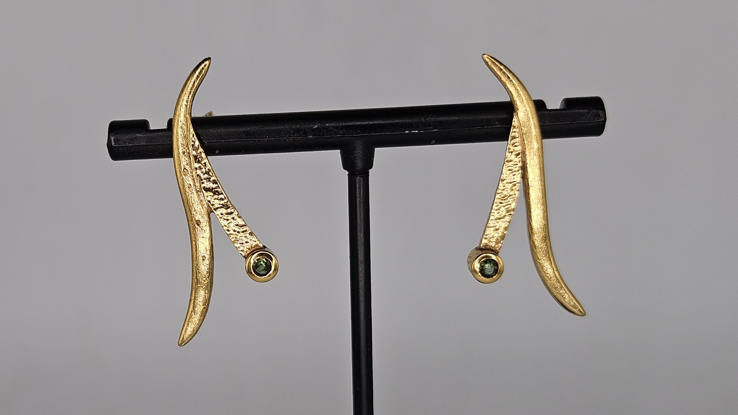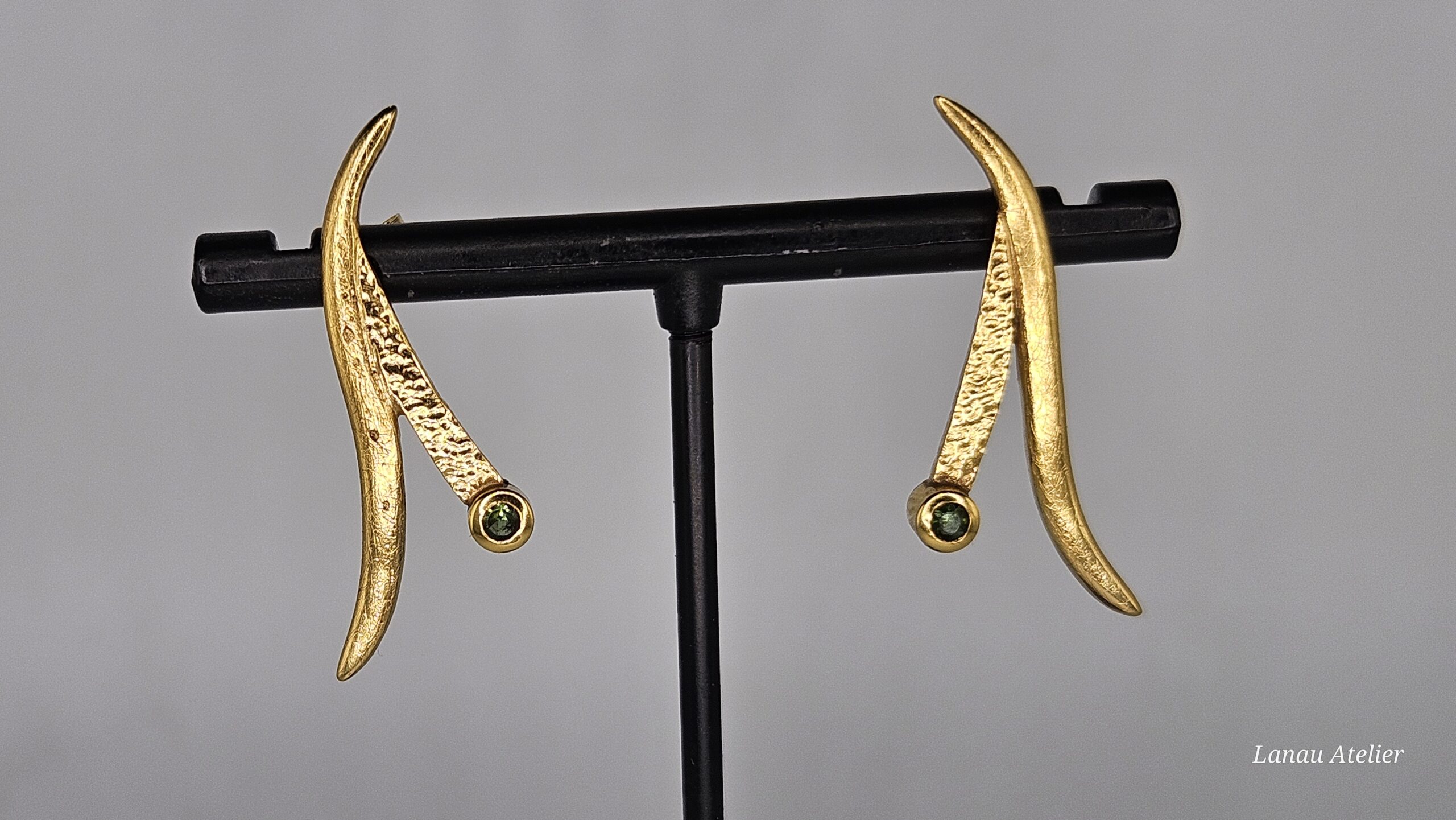 Descubre la delicadeza y el brillo de estos pendientes únicos, elaborados en plata de ley 925 con un elegante chapado en oro de 18 quilates. Cada pendiente presenta una turmalina verde natural de 3 mm con talla brillante, que aporta un toque de frescura y color vibrante a tu look.