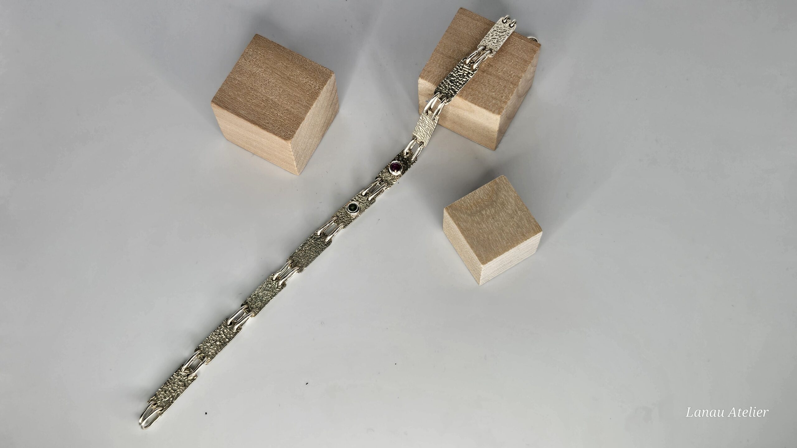 Un delicado diseño que combina la calidez del rubí natural con la frescura de la turmalina verde, ambas piedras de tamaño pequeño (2.5-3 mm) que aportan un contraste de color vibrante y elegante. Montadas en plata de ley, estas gemas resaltan la belleza y autenticidad de una joya artesanal.