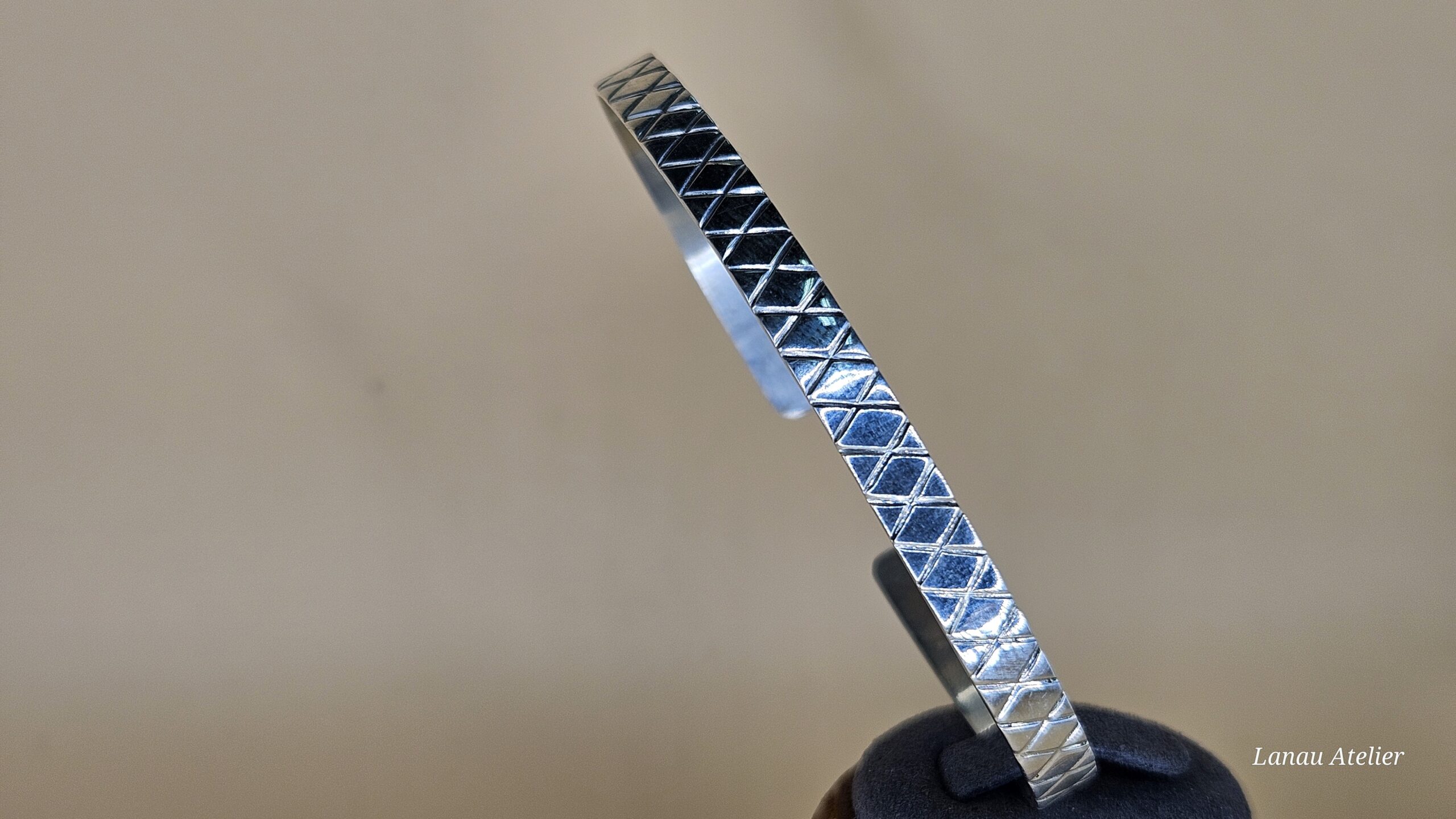 Descubre esta pulsera abierta de plata de ley 925, diseñada con una textura artesanal que aporta un brillo único y un aspecto moderno. Su acabado limado realza la luz y crea un efecto elegante que destaca en cualquier ocasión. Es ligera, cómoda y ajustable, ideal para llevar todos los días sin perder estilo.